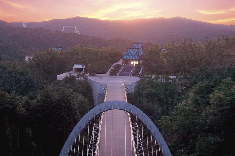 Inmitten der üppigen Schönheit der Natur in den Shigaraki-Bergen in der Präfektur Shiga, Japan, schuf Shumei das Miho Museum. Das Museum öffnete seine Türen im November 1997 und hat seitdem Besucher aus der ganzen Welt zu diesem abgelegenen Ort geführt. Es wurde von dem Architekt I. M. Pei entworfen, der für die Glas-Pyramide im Louvre in Paris und andere Bauten berühmt ist. Die Architektur ist vollständig der Kunst und Schönheit gewidmet, 2018 fand hier die Louis Vuitton Fashion Show statt.